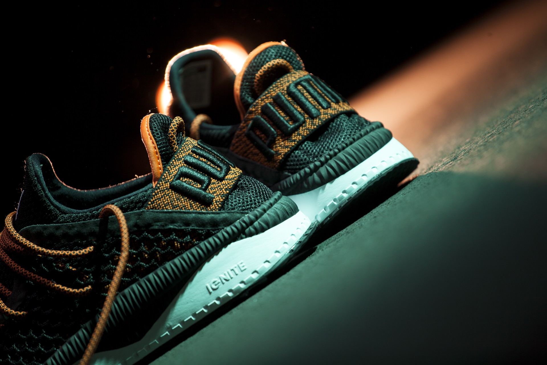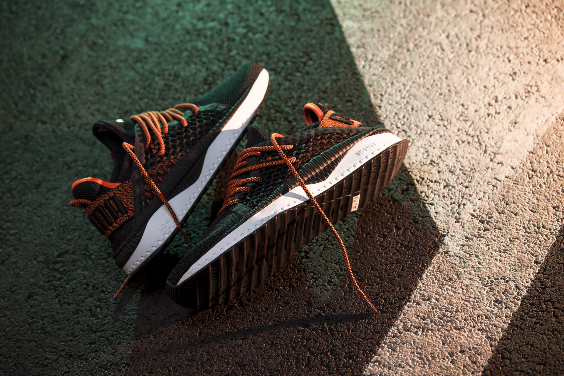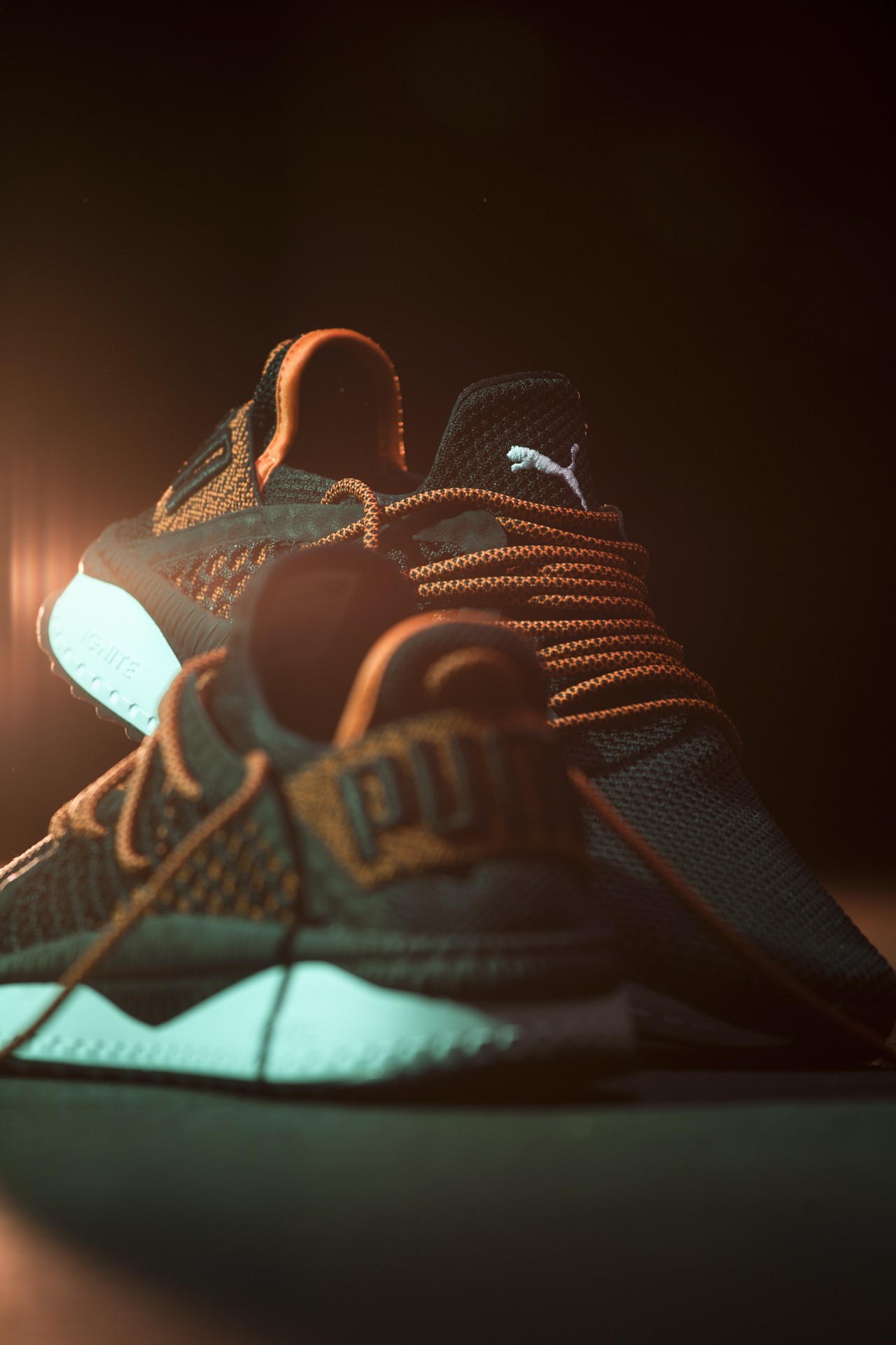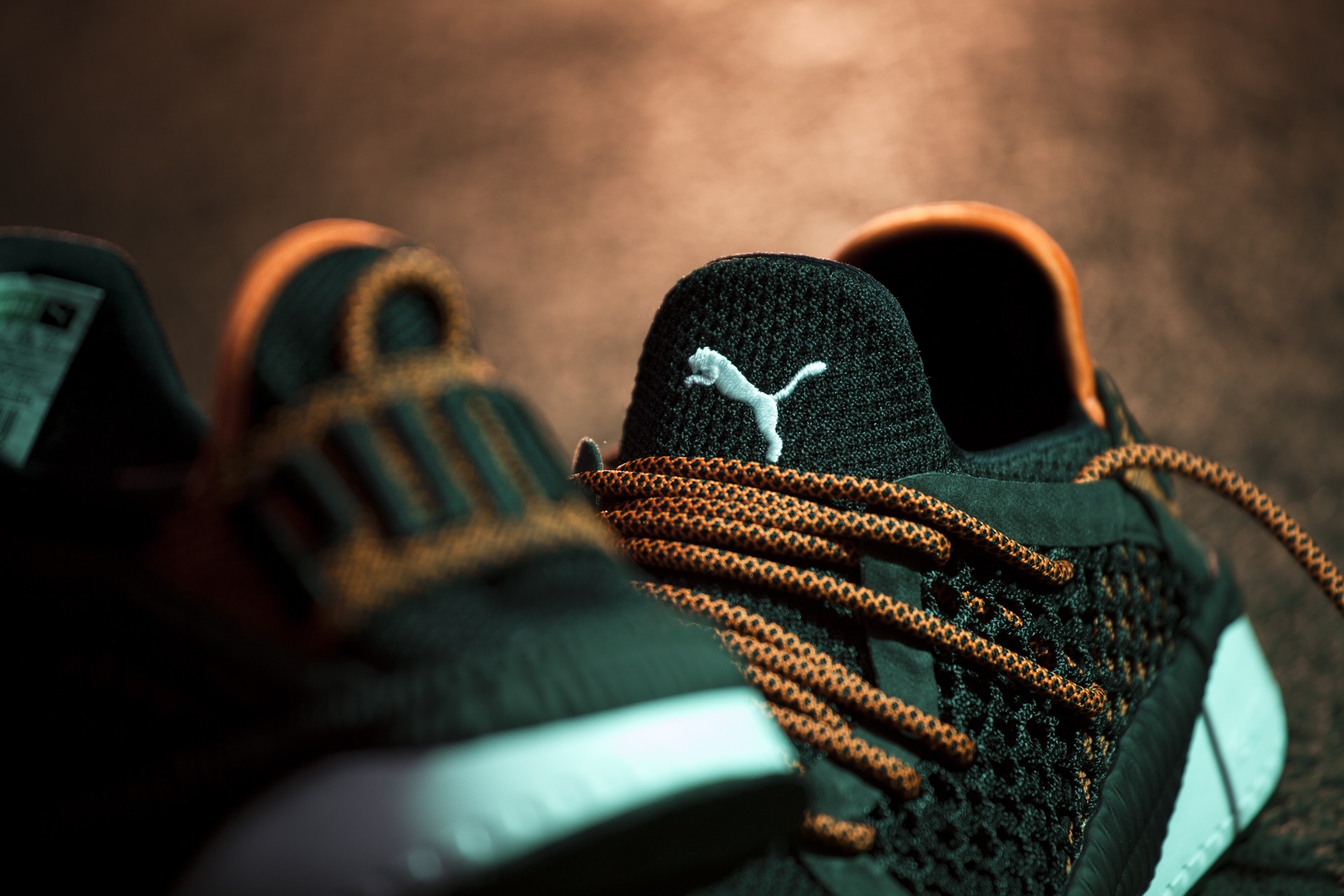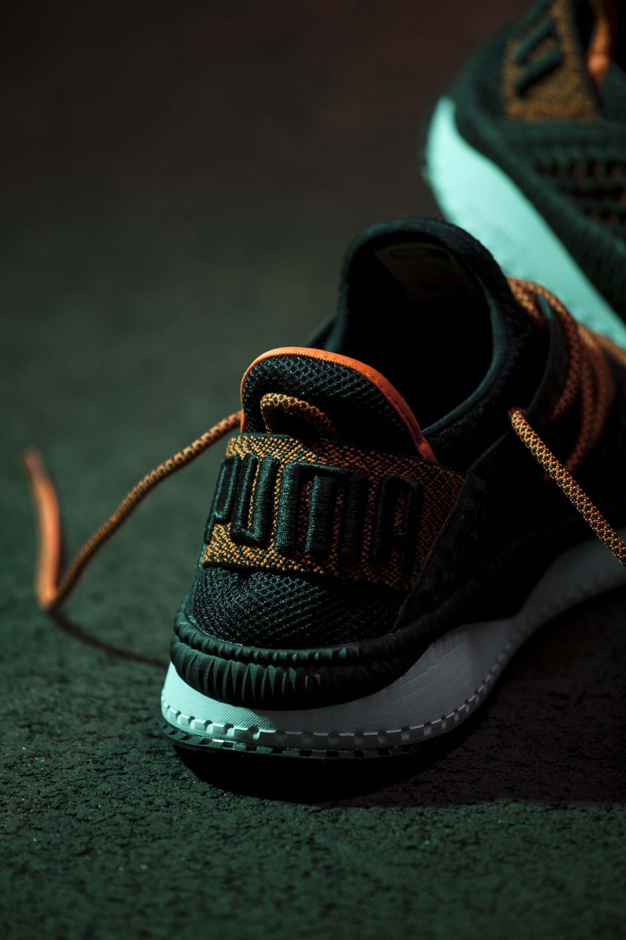 Doch beginnen wir von vorne. Die Netfit Variante der Tsugi Silhouette ist kürzlich in drei dezenten aber sehr starken Colorways auf dem Markt erschienen und hat unsere Aufmerksamkeit sofort auf sich gezogen. Das Upper des für uns stärksten Colorways besteht aus Strick, gepaart mit Mesh und kommt im soliden „Puma-Black“ daher. Farblich wird das Ganze vom „Scarlet-Ibis“ (oder einfach orange) färbigen Heelstrap im Fersenbereich abgerundet. An alle Huarache-Träger: nachdem es sich hier um eine sehr stabil anmutende Strickversion des Heelstraps handelt, sollte man auch lange Zeit Freude beim Tragen haben 😉
