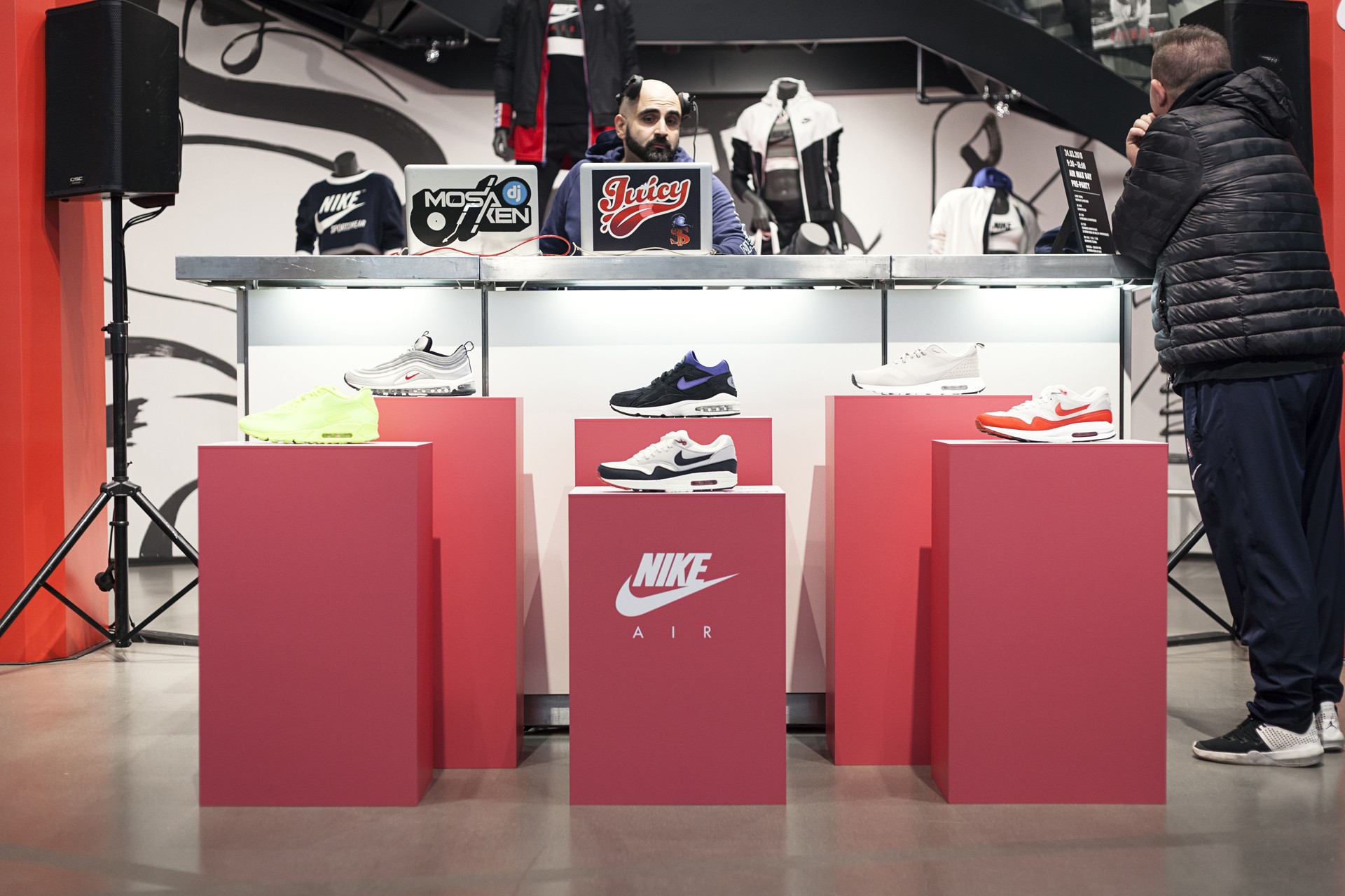 Es ist / war soweit – der März neigte sich dem Ende zu, Air Max Fans wissen was das bedeutet. Zum Abschluss des Air Max Monats stand auch heuer der 2015 eingeführte Air Max Day (26. März) wieder vor der Tür. Nike hatte sich zu diesem Anlass nicht zwei Mal bitten lassen und gemeinsam mit der Wiener DJ Legende DJ Mosaken, das Kick Off Event zum Air Max Day 2018 auf die Beine gestellt. Letzten Samstag lud DJ Mosaken zur Air Max Day Pre Party by DJ Mosaken im Nike Store Vienna ein, auch wir haben uns nicht zweimal fragen lassen und uns für euch auf der Party ein Bild gemacht.