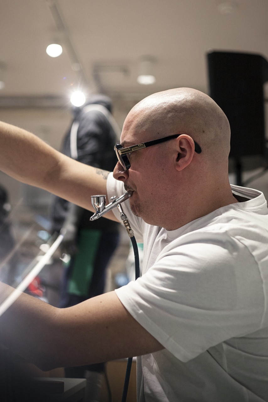 Für alle, die sich an diesem Tag einen der neuen Colorways sichern konnten, hielt Nike an der Kasse auch noch eine Überraschung parat. Zu jedem gekauften Air Max gab es ein Goodie-Pack mit einem Air Max 270 Pin, einem Air Max 270 Keychain und einem persönlich customized Nike Air Tote Bag. Für die Custom Tote Bags war der Wiener Airbrushkünstler @dworacekart verantwortlich und ließ dank des großen Anstrums den Kompressor glühen.