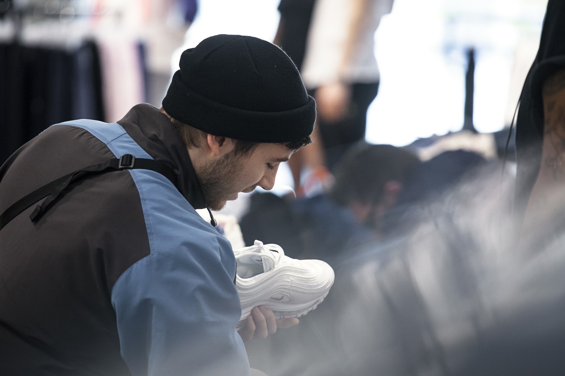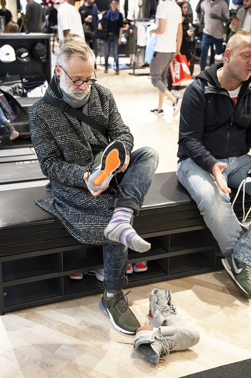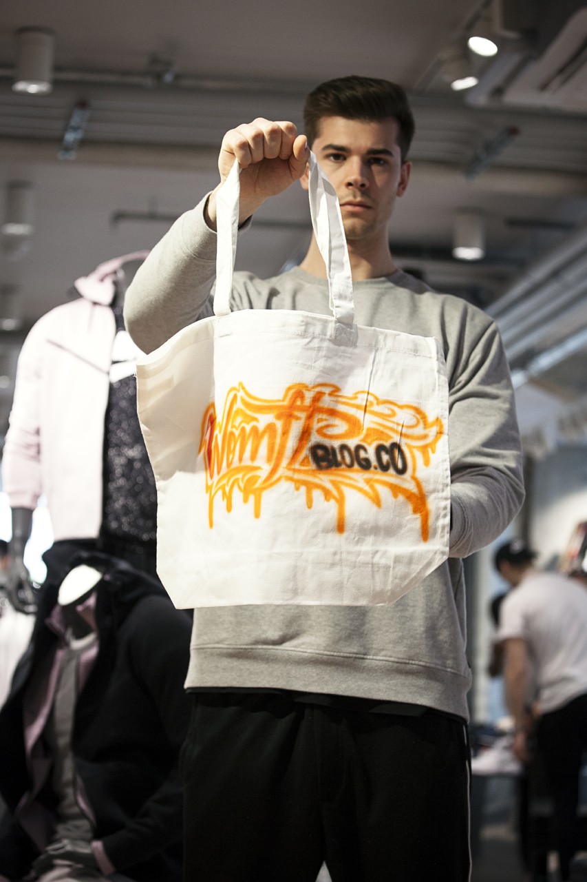 Für alle, die sich an diesem Tag einen der neuen Colorways sichern konnten, hielt Nike an der Kasse auch noch eine Überraschung parat. Zu jedem gekauften Air Max gab es ein Goodie-Pack mit einem Air Max 270 Pin, einem Air Max 270 Keychain und einem persönlich customized Nike Air Tote Bag. Für die Custom Tote Bags war der Wiener Airbrushkünstler @dworacekart verantwortlich und ließ dank des großen Anstrums den Kompressor glühen.