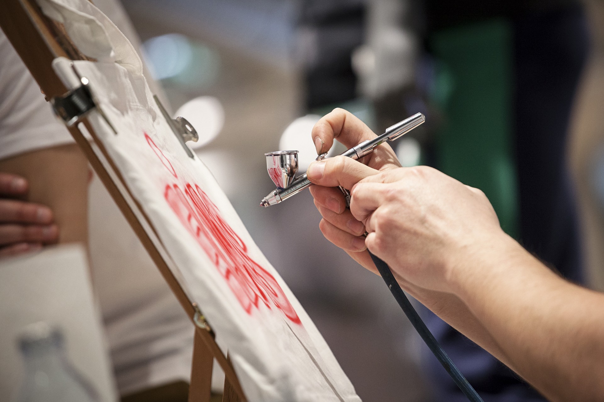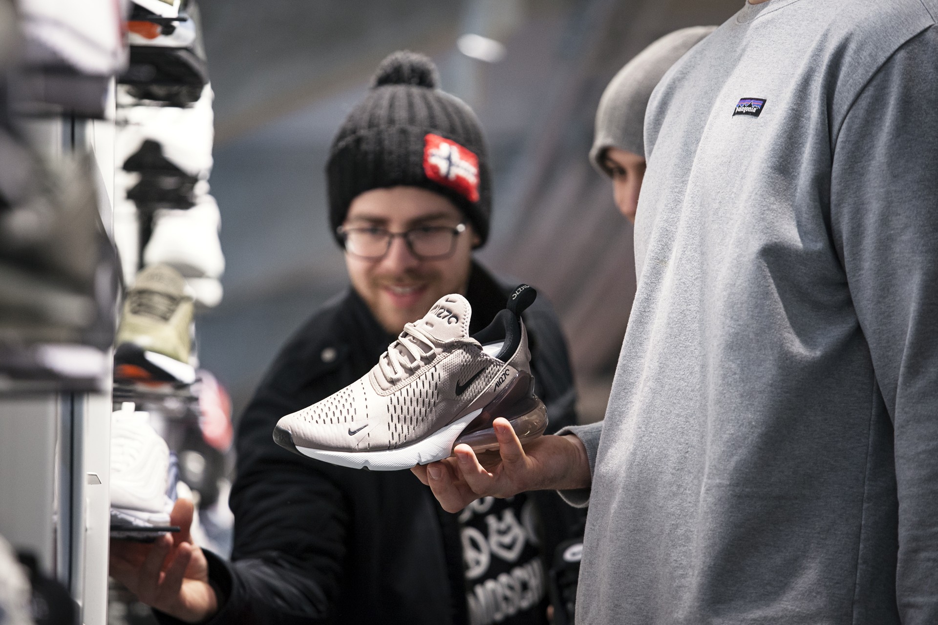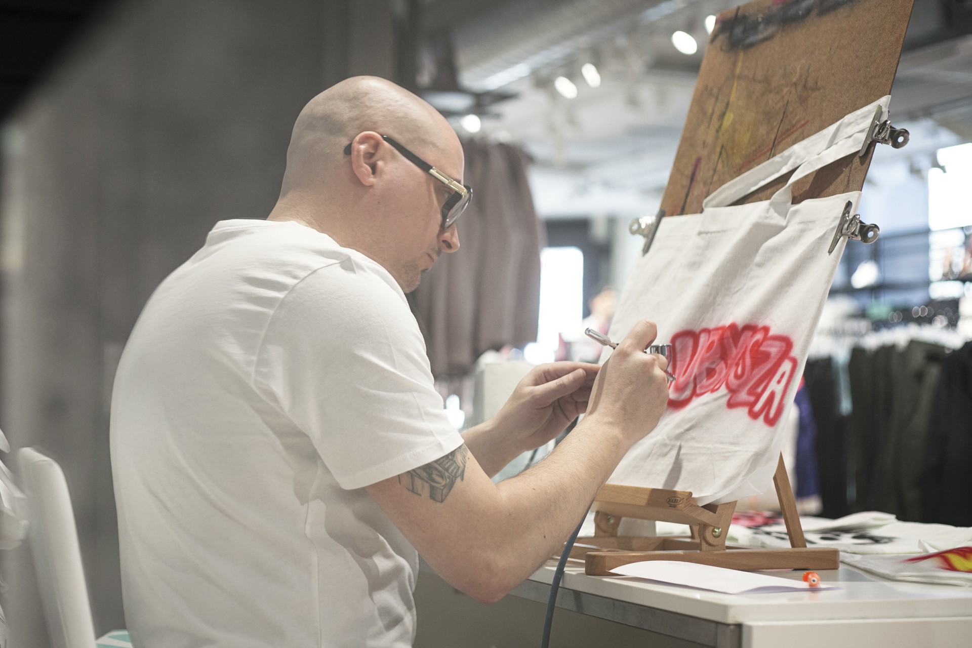 Für alle, die sich an diesem Tag einen der neuen Colorways sichern konnten, hielt Nike an der Kasse auch noch eine Überraschung parat. Zu jedem gekauften Air Max gab es ein Goodie-Pack mit einem Air Max 270 Pin, einem Air Max 270 Keychain und einem persönlich customized Nike Air Tote Bag. Für die Custom Tote Bags war der Wiener Airbrushkünstler @dworacekart verantwortlich und ließ dank des großen Anstrums den Kompressor glühen.