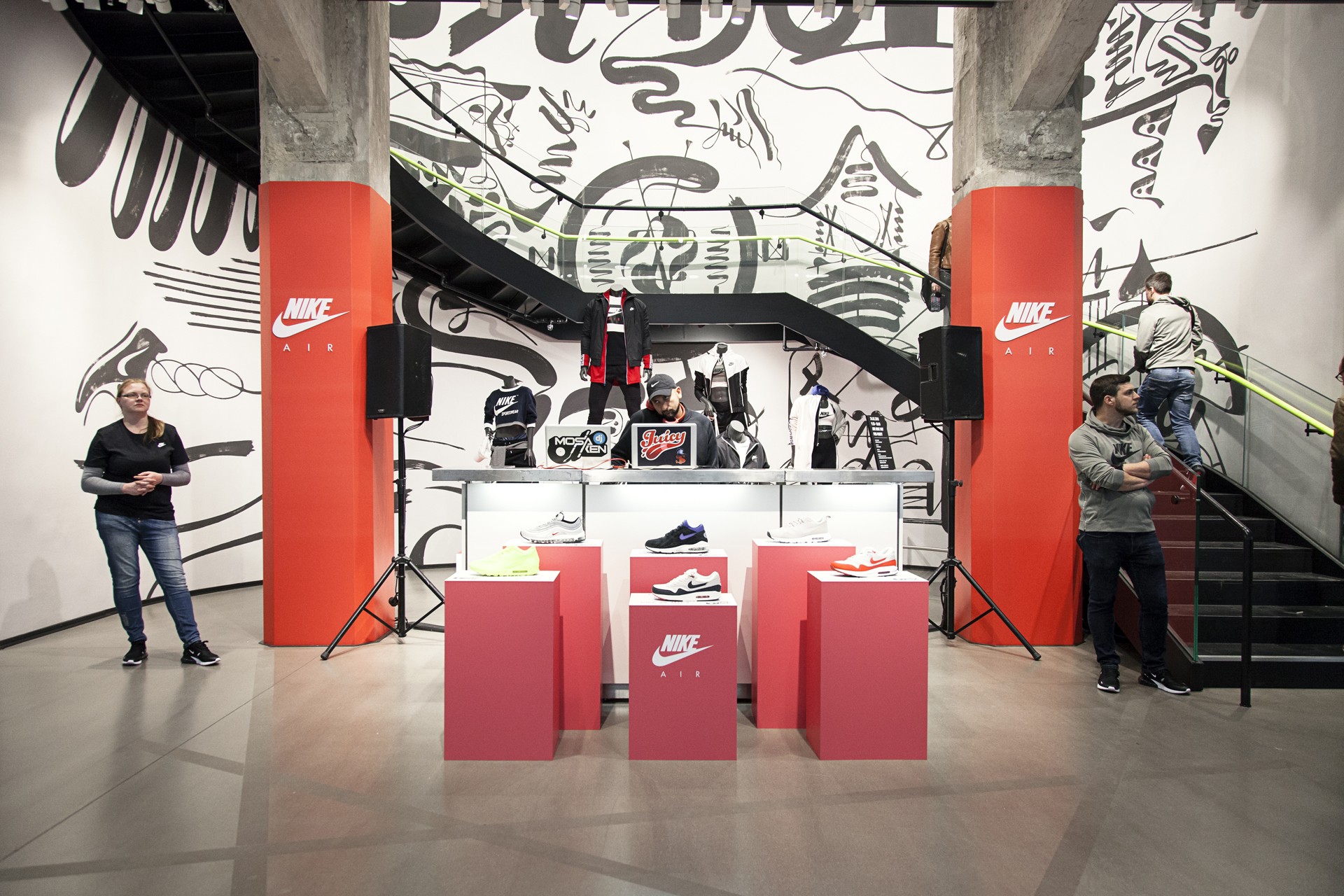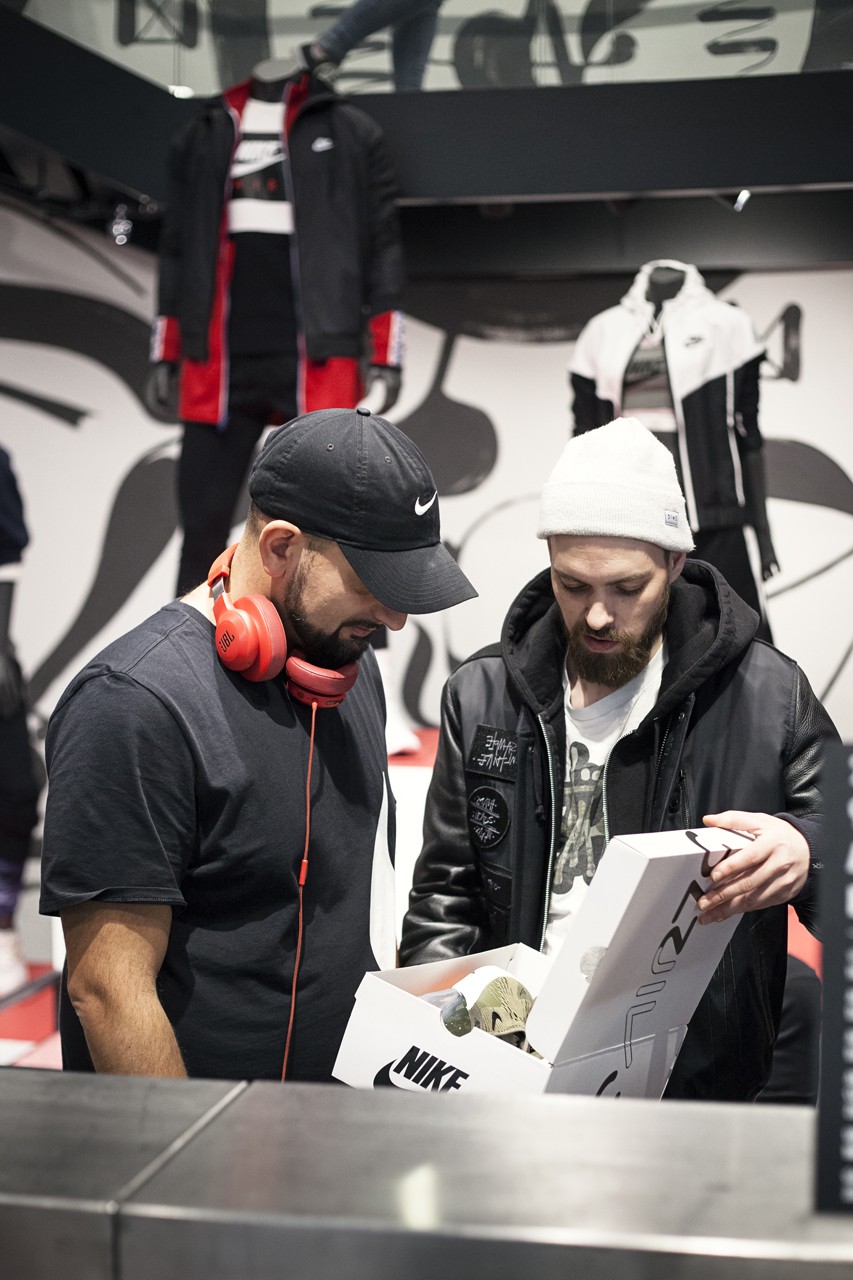 Eines gleich vorweg – das Team vom Nike Store Vienna hat sich ordentlich ins Zeug gelegt und mit der Pre-Party sowohl Heads, als auch die normalsterbliche Laufkundschaft mit einem umfangreichen Programm und einer großen Auswahl an aktuellen Air Max Modellen, Air Max Apparel und dem ein oder anderen Schmankerl versorgt. Für die passenden Beats sorgten DJ Mosaken und DJ Mastercash von der Juicy Truppe – wieder einmal top Arbeit, Jungs!